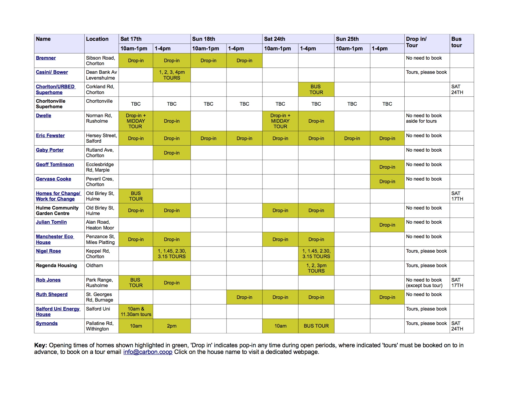 Contact us in advance or on the day via info@carbon.coop or call 0782 861 7933