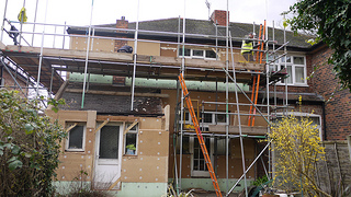 - External wall insulation (as appropriate often at side and rear of property), e.g. 180mm thick Unger-Diffutherm woodfibre (for vapour permeability and all round sustainability)